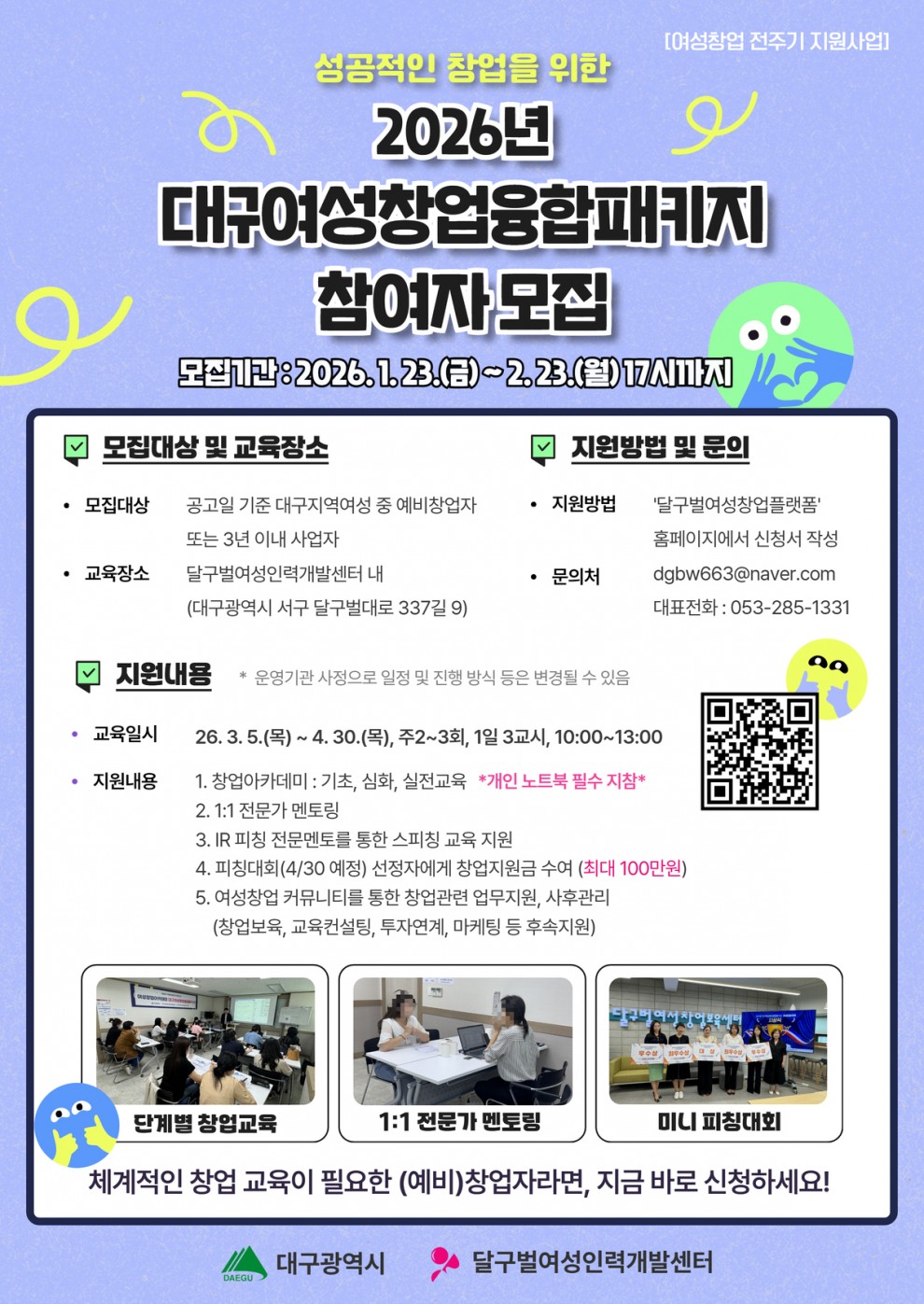 ▶ 공고문 바로가기 : 2026년 대구여성창업융합패키지 공고 링크